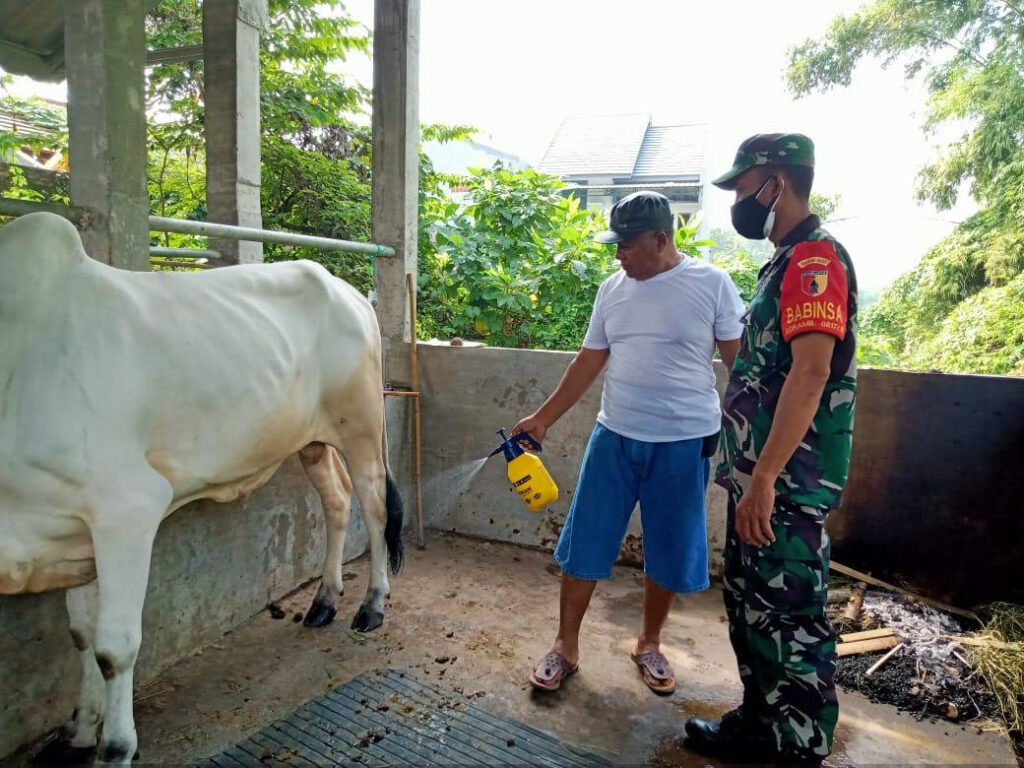 GRESIK- beritautama.co- Mengantisipasi penyebaran penyakit mulut dan kuku (PMK) pada hewan ternak seperti sapi, kerbau dan kambing, bintara pembina desa (Babinsa) di jajaran Kodim 0817/Gresik aktif sambang ke wilayah binaan, terutama yang di wilayahnya ada peternak kambing, sapi ataupun kerbau.