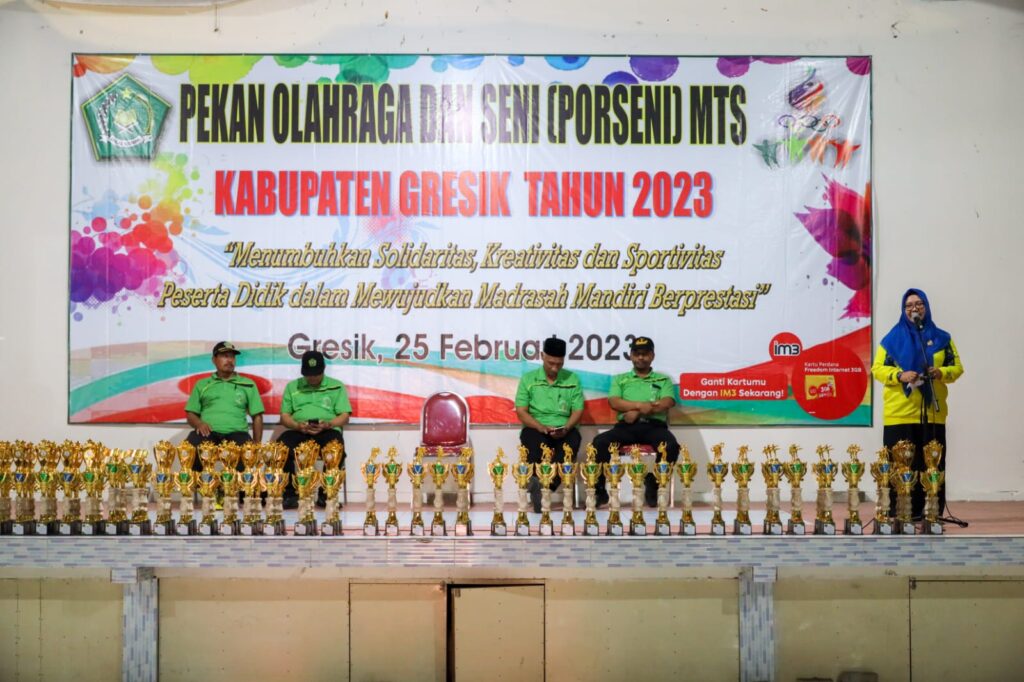 GRESIK, Berita Utama – Pekan Olahraga dan Seni (Porseni) merupakan ajang yang penting dalam menjaring bibit yang berprestasi. Selain itu, event tersebut dapat sebagai media dalam membentuk mental siswa juara. Hal tersebut dikatakan Wakil Bupati Gresik Aminatun Habibah (Bu Min) ketika membuka Porseni Tingat Madrasah Tsanawiyah se Kabupaten yang diselenggarakan Kantor Kementerian Agama Kabupaten Gresik di Kecamatan Sidayu, Sabtu (25/02/2023).
