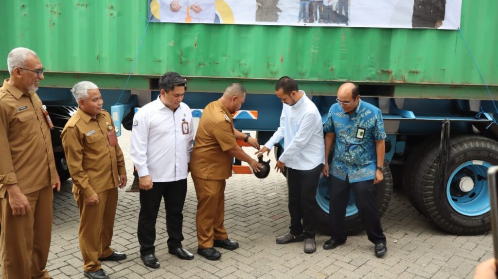 GRESIK, Berita Utama- Bupati Gresik, Fandi Akhmad Yani, secara resmi melepas ekspor perdana pakan ternak ke Malaysia. Pakan ternak tersebut berbahan dasar cocoa shell atau kulit kakao yang bahan baku diperoleh dari PT Cargill Indonesia, kemudian diproses secara sederhana oleh PT Aji Bakuh Anugrah dengan menyesuaikan permintaan pembeli.