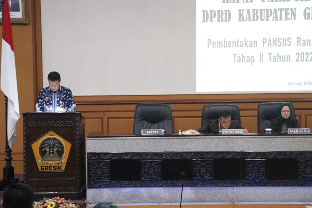 GRESIK, Berita Utama- Rapat paripurna internal DPRD Gresik, Kamis (08/12/2022), menyepakati membentuk 3 panitia khusus (pansus) untuk membahas 5 buah rancangan peraturan daerah (ranperda) dalam Program Pembentukan Peraturan Daerah (Propemperda) Tahap II tahun 2022. Yakni 4 buah usul prakarsa DPRD Gresik dan 1 buah ranperda usul prakarsa Pemkab Gresik.
