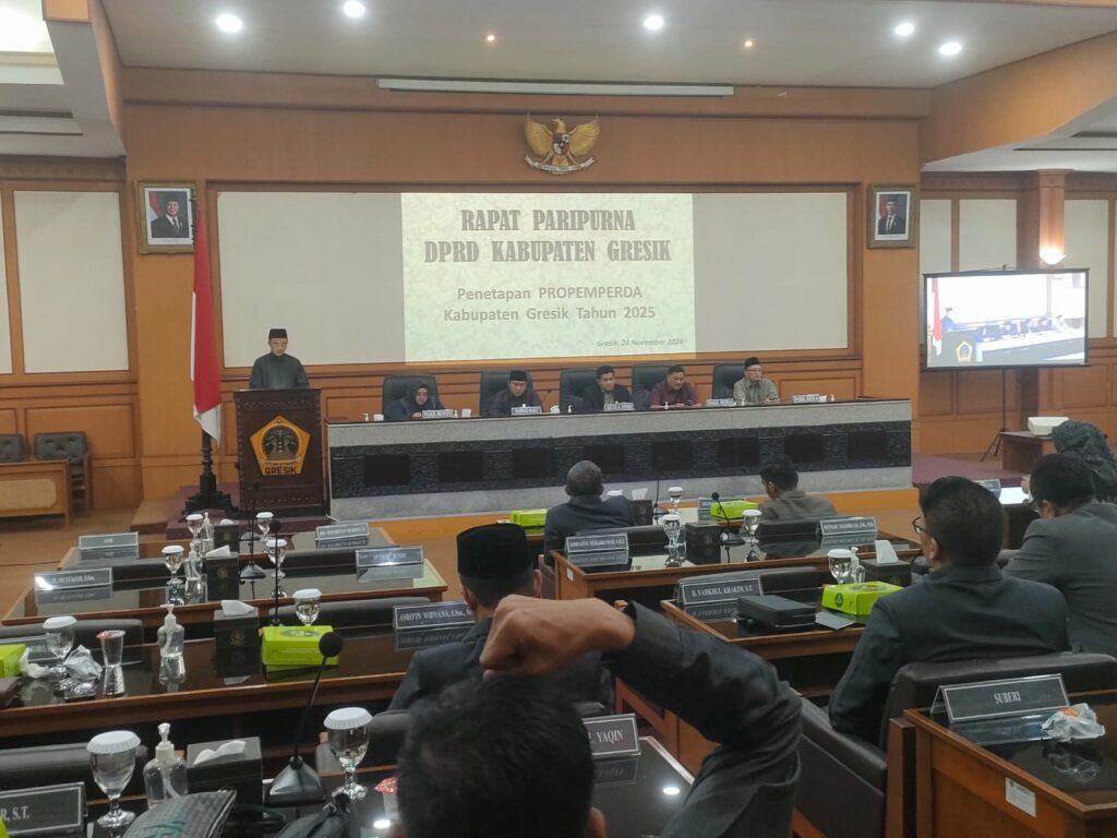 Sebelum pengambilan keputusan, Ketua Badan Pembentukan Peraturan Daerah (Bapemperda) DPRD Gresik, Khoirul Huda membacakan laporannya. Dikatakan, penetapan Propemperda tahun 2025 menjadi momentum yang sangat penting dalam merancang peraturan-peraturan yang akan mendukung pencapaian visi dan misi pembangunan daerah.
