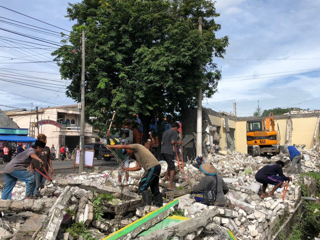 GRESIK, Berita Utama – Sebanyak empat unit alat berat dikerahkan oleh Pemkab Gresik untuk melanjutkan pembongkaran ratusan kios di sepanjang Jalan Raya Manyar, Gresik pada Rabu (15/2/2023).