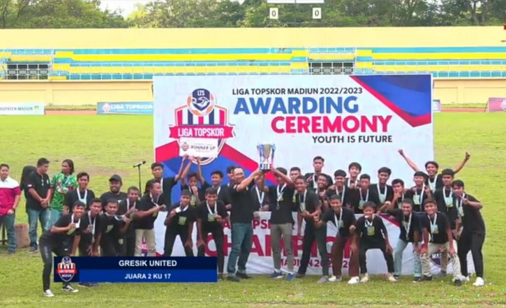 GRESIK, Berita Utama – Hasil manis diperoleh Gresik United (GU) U-17 dalam mengikuti Liga Top Skor 2022/2023 di Madiun. Buktinya, tiga penghargaan berhasil diraih di antaranya yakni juara 2 Kelompok Usia (KU) -17, pelatih terbaik, dan top skor atas nama Rivan Arya yang mengoleksi 9 gol.
