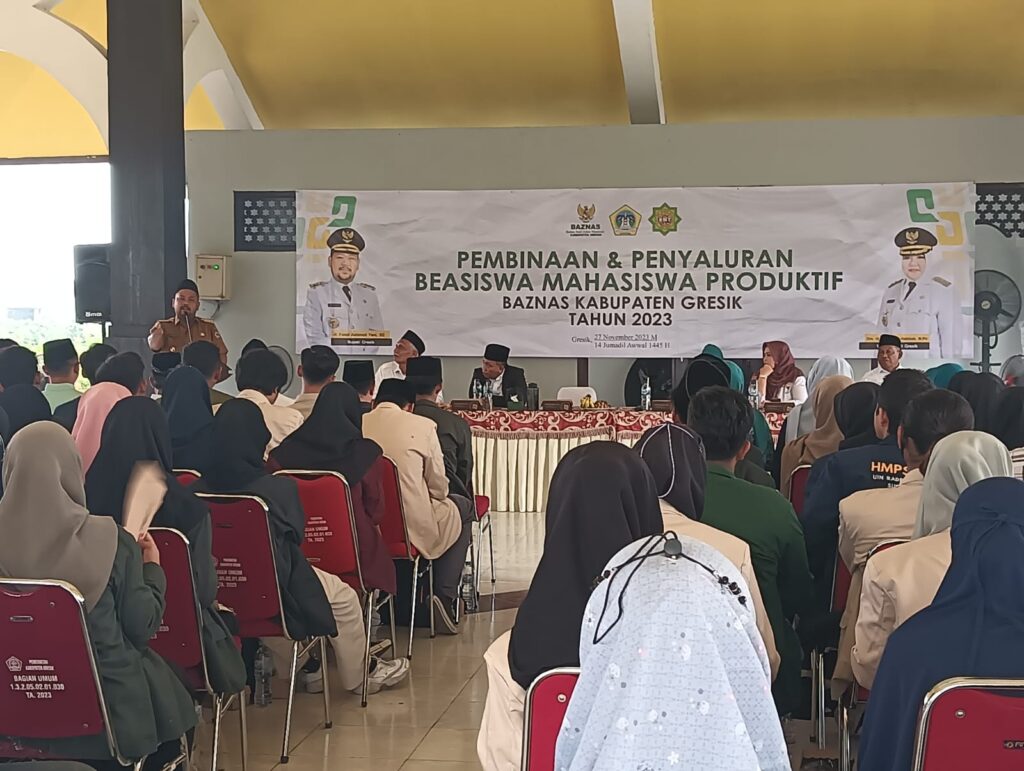 Hal ini disampaikannya saat menghadiri kegiatan Pembinaan dan Penyaluran Beasiswa Mahasiswa Produktif Baznas Kabupaten Gresik tahun 2023 yang dilaksanakan di Rumah Joglo Pemerintah Daerah Kabupaten Gresik, Senin (27/11/2023).