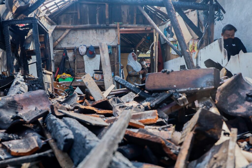 Rumah Kisnadi ludes dalam kebakaran yang diduga akibat konsleting listrik pada Rabu malam (17/05/2023) kemarin. Bu Min berpesan agar Kisnadi tidak patah semangat dan berlarut dalam kesedihan.