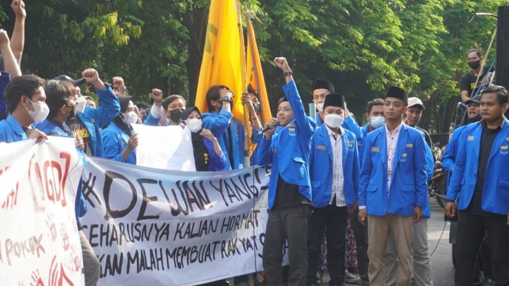 BOJONEGORO – Beritautama.co – Ratusan Aktivis Pergerakan Mahasiswa Islam Indonesia (PMII) Bojonegoro menggelar aksi di depan Gedung DPRD Bojonegoro, Senin (18/04/2022) kemarin. Mereka membawa lima tuntutan, di antaranya yakni menolak pelarangan pembelian BBM menggunakan jeriken yang menyusahkan rakyat kecil.