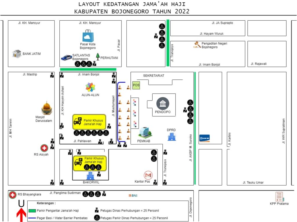 Kepala Bidang (Kabid) Lalu Lintas Dinas Perhubungan (Dishub) Bojonegoro Bambang Loemawan menerangkan, pihaknya akan mensterilkan alun-alun guna menyambut para Tamu Allah yang telah melakukan ibadah di Tanah Suci.